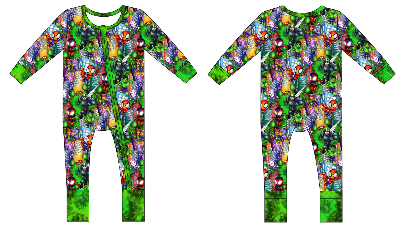 - Fold over hands and Feet (with grips for sizes 6-12 Months and up)