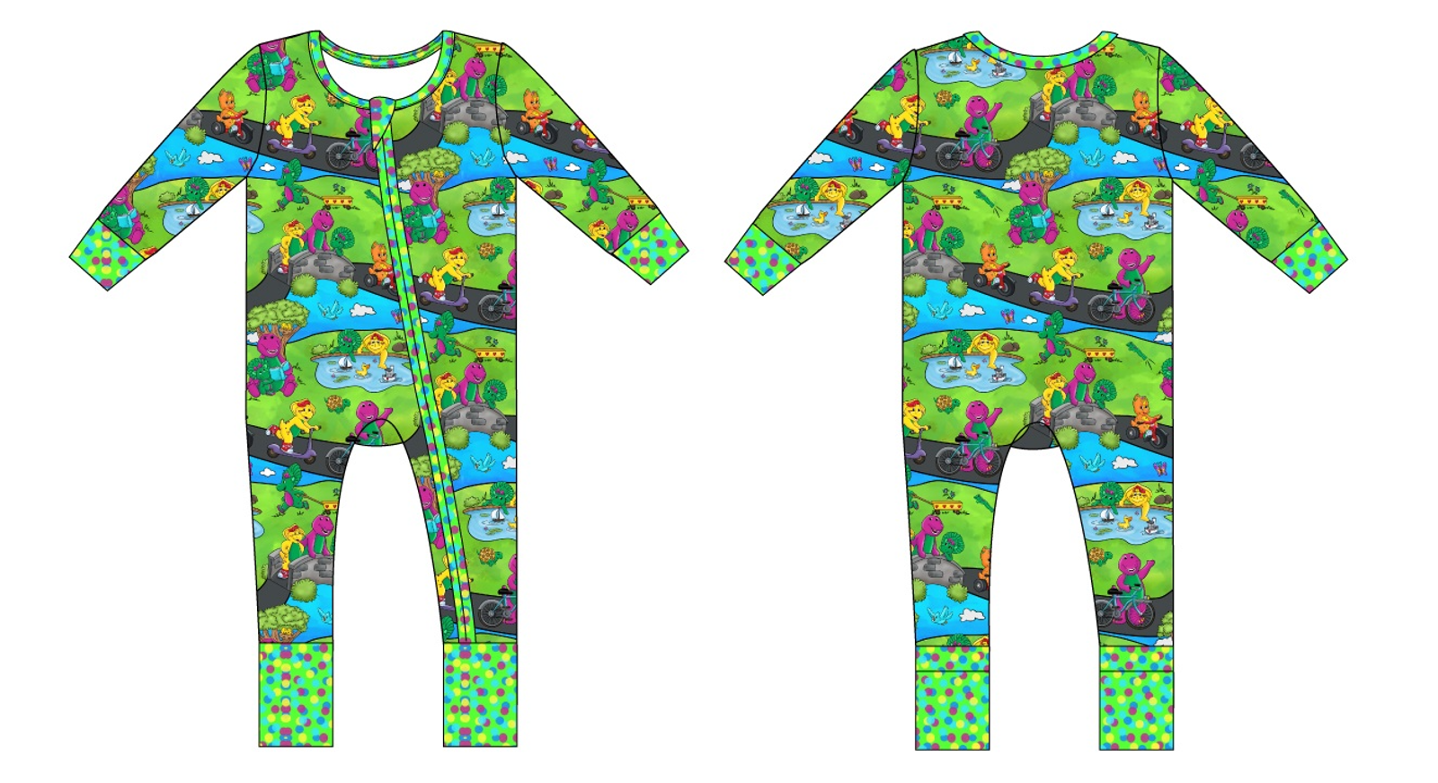 - Fold over hands and Feet (with grips for sizes 6-12 Months and up)